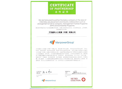 近期, 美都教育旗下职业发展中心(CDC)经理柯老师与万宝盛华人力资源(中国)有限公司招聘主管王先生友好洽谈后,签署协议成为合作伙伴。 图为合作证书 万宝盛华人力…
