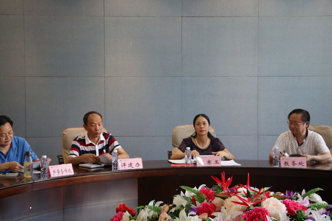 7月24日,调研小组与湖北师范大学副校长王赛玉及校教务处、评建办、招就处、产学合作处、鼎利学院等负责人进行了会面。