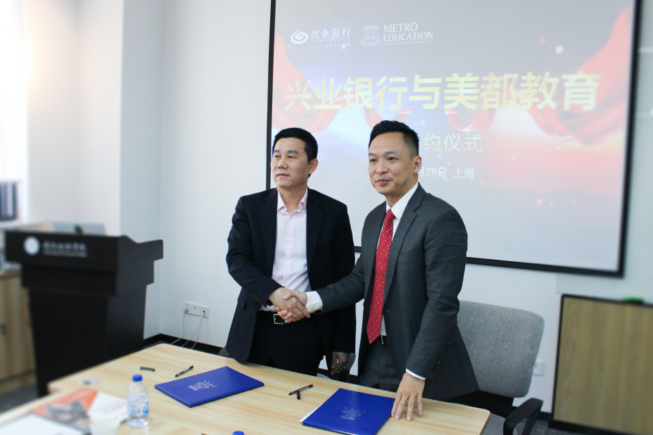 2019年10月29日,兴业银行私人银行部总经理戴叙贤先生、兴业银行私人银行部总经理助理郑红星先生、兴业银行上海分行私人银行部总经理许惠恒女士、兴业银行私人银行部客户管理处副处长金毅先生等一行前往上海美都,上海美都教育总经理陈振禄先生、上海美都教育副总经理吴健女士、上海美都教育总经理助理胡燕女士、上海美都教育财务总监卜莉娜女士等相关工作人员给予热情接待,双方就留学教育服务达成共识,签署战略合作协议。
