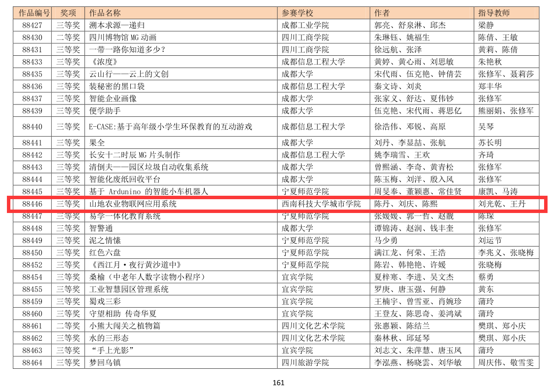近日,中国大学生计算机设计大赛组委会发布2020年第十三届中国大学生计算机设计大赛全国总决赛结果,西南科技大学城市学院鼎利学子与985、211高校同台竞技,“山地物联网应用”项目斩获物联网系列三等奖。