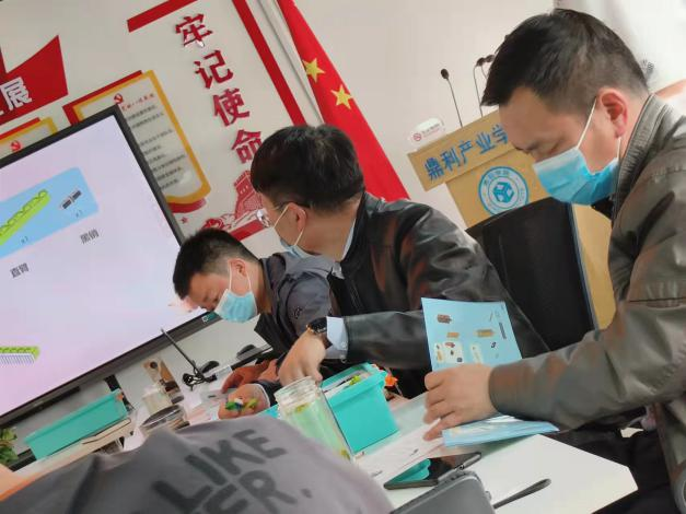 随后,项目班第二组成员代表邓博望向大家进行了一节《陀螺发射器》课程的展示,因为前期多轮的打磨,课程展示生动、活泼、风趣,在操作部分带动验收老师们动手搭建。整个展示过程获得了验收组老师们的极大认可,展示课件是同学们自行开发的,验收组老师们纷纷向同学们点赞。