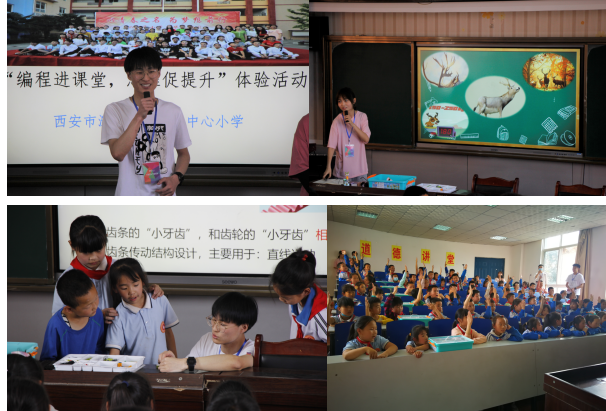 项目团队借助校企合作单位广州粤嵌通信科技股份有限公司在少儿编程培训方面先进的方法与多年经验,深入白鹿原中心小学、狄寨小学、托管班等进行学情调研,秉承因材施教,指导老师带领团队成员完成小学一、二、三年级的课件研发及模拟演练,为高品质授课奠定了基础。