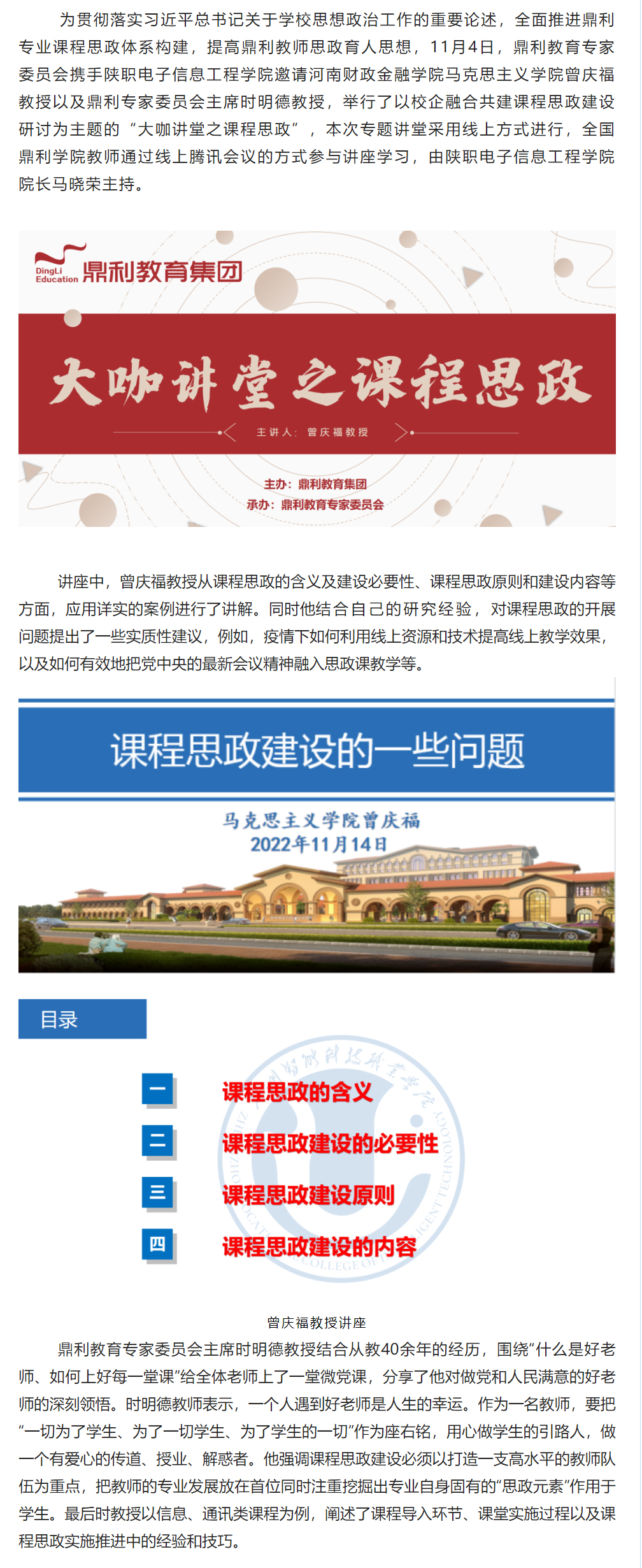 鼎利教育专家委员会“大咖讲堂之课程思政”专题讲座