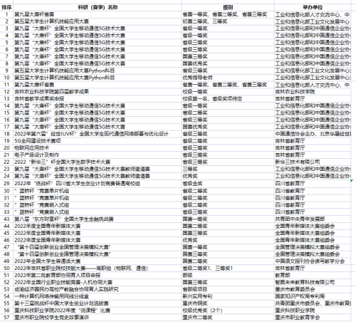 以赛促教、以赛促学。2022年,鼎利教育深入贯彻UBL人才培养模式,坚持以“学生为中心”,积极鼓励并组织鼎利师生参加各级各类职业技能竞赛,既提升了师生专业技术技能水平,又提高了教师的“双师”能力和学生职业能力。2022年,鼎利师生参加了全国行业职业技能竞赛-人机协同大赛、第九届“大唐杯”全国大学生移动通信5G技术大赛、第十四届创新创业全国管理决策模拟大赛等竞赛,获得了国赛一、二、三等奖共14项;参加省级职业院校技能大赛、第五届大学生计算机技能应用大赛等竞赛,获得一、二、三等奖共50余项。