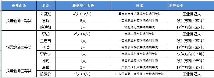 在本科组和高职组的软件比赛项目中,参赛选手们凭借扎实的基本功和沉稳的心态,全神贯注,认真答题;而工业机器人方向的比赛则从调试、控制、功能实现、试产等方面对选手进行了全方位的考核。经过激烈角逐,张松(吉林农业科技学院鼎利学院)、赵欣(湖北师范大学鼎利学院)、王宁(陕西职业技术学院鼎利学院)等同学分别获得软件方向(本科组、高职组)一、二、三等奖;重庆安全技术职业学院“汪汪队”等分别获得工业机器人团体一、二、三等奖;高峰(吉农)、朱载明(重安)等指导教师分别被授予“优秀指导教师”称号。