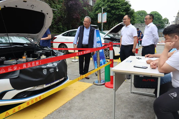 为大力弘扬劳模精神和工匠精神,展示职业教育育人成果,5月9日,重庆安全技术职业学院鼎利学院联合学校智能制造与工业安全系,组织开展“匠心筑梦,职面未来”职业教育周活动暨第十届新能源汽车故障诊断与排除技能竞赛。学校副校长邹礼均、潘久政,教务处处长张立明莅临活动现场并与师生进行了深入交流。智能制造与工业安全系党支部书记夏铭、鼎利学院院长、系部教师、辅导员以及学生代表参加活动。